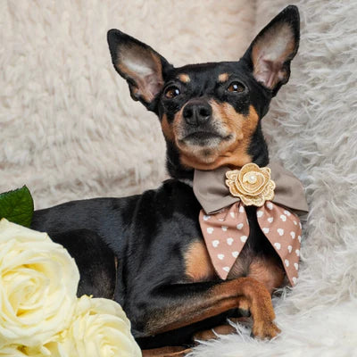 this wayAll our accessories are made by hand with a lot of care and attention. Therefore every single bow and bandana is unique. We can make personalised bandanas on request for special occasions, like a birthday or a wedding, and we can also add a name or a date.