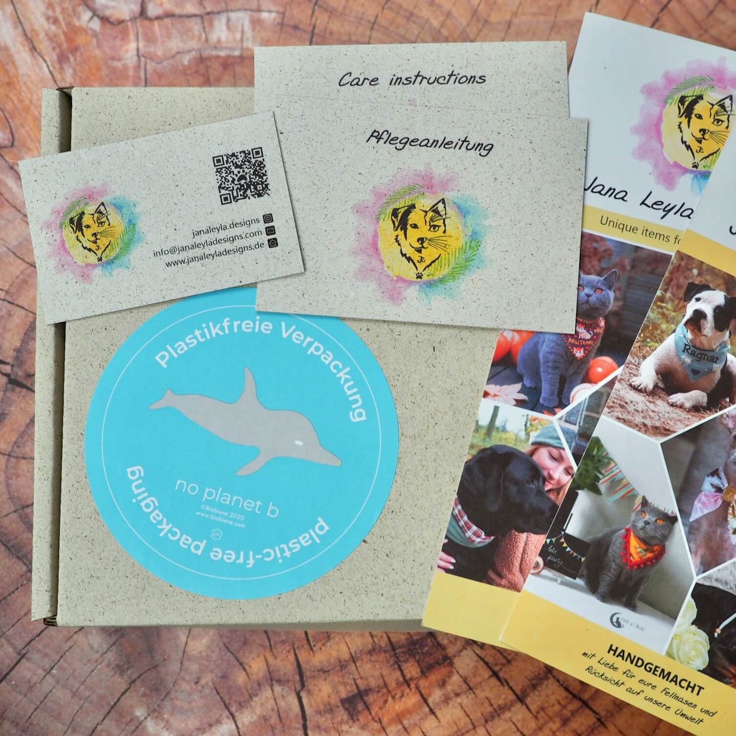 Wir lieben die Hundebandanas. Es gibt eine große Auswahl und für jeden Geschmack ist etwas dabei. Die Qualität ist so gut und auf individuelle Wünsche wird immer Rücksicht genommen. Auch der Umweltschutz ist für uns ein ganz großes Pluspunkt: plastikfreie Verpackung und Verschlussbänder aus recycelten Textilien. Was will man mehr?