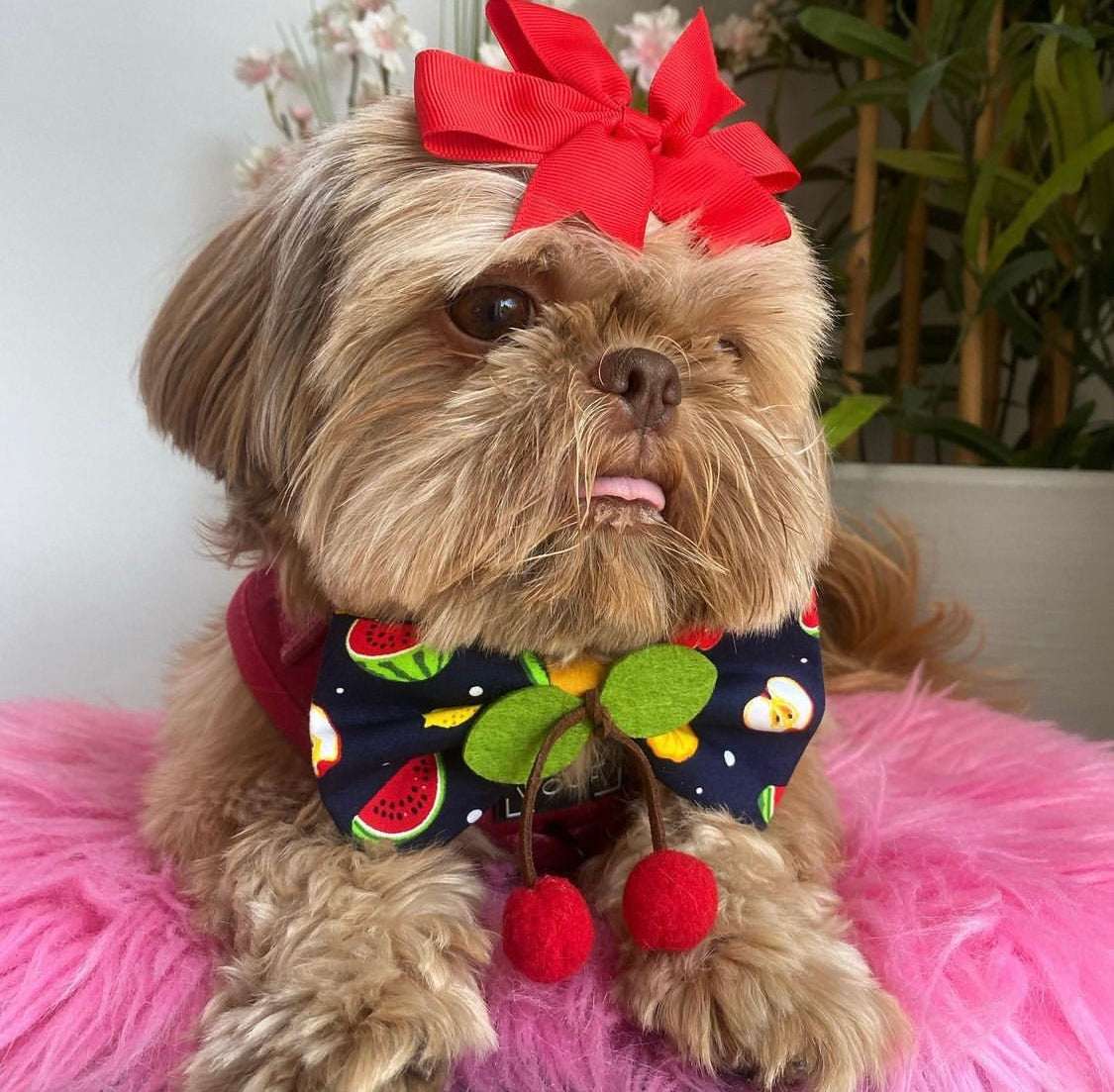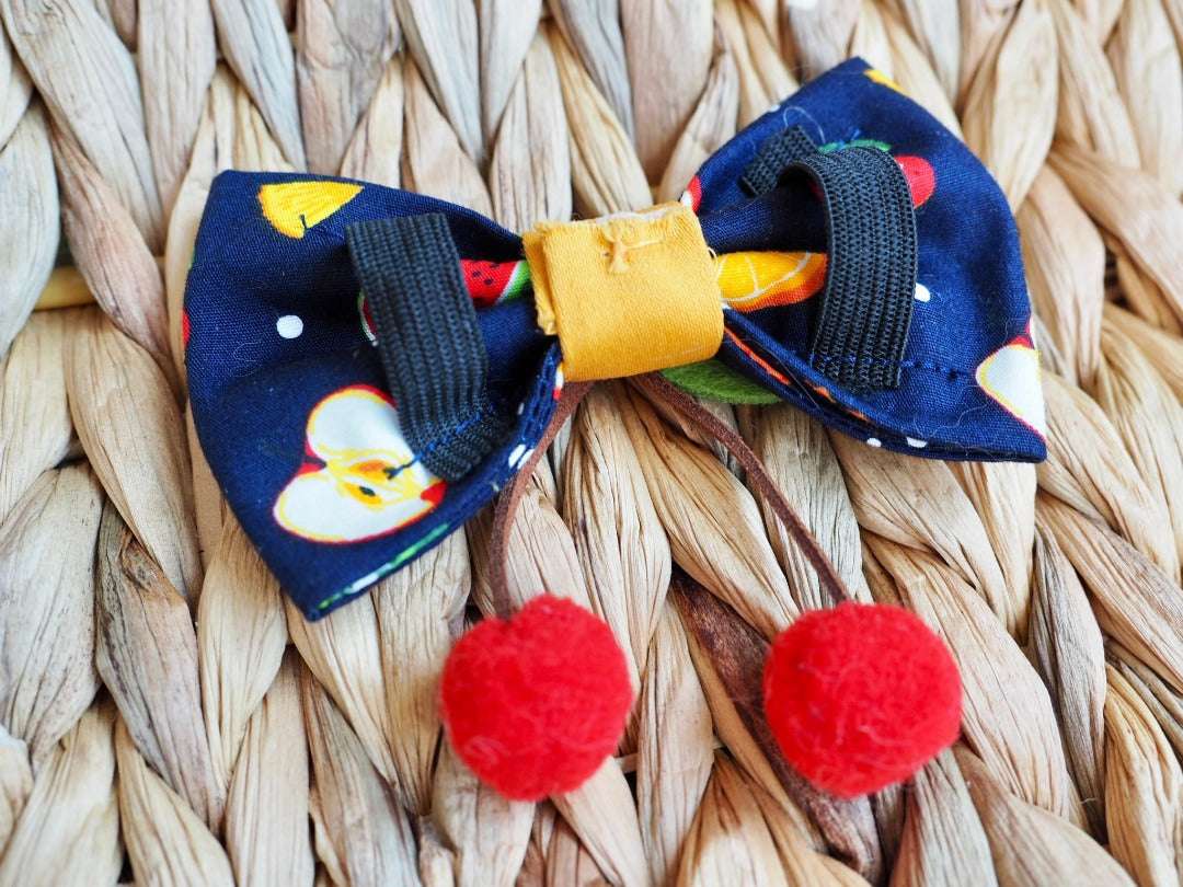 What goes better with summer than a delicious fruit salad? Here in the form of our handmade dog bow and cat bow with lots of sweet fruit and a cherry made of felt - a great eye-catcher for photo shoots or simply for cozy walks with your pets :)