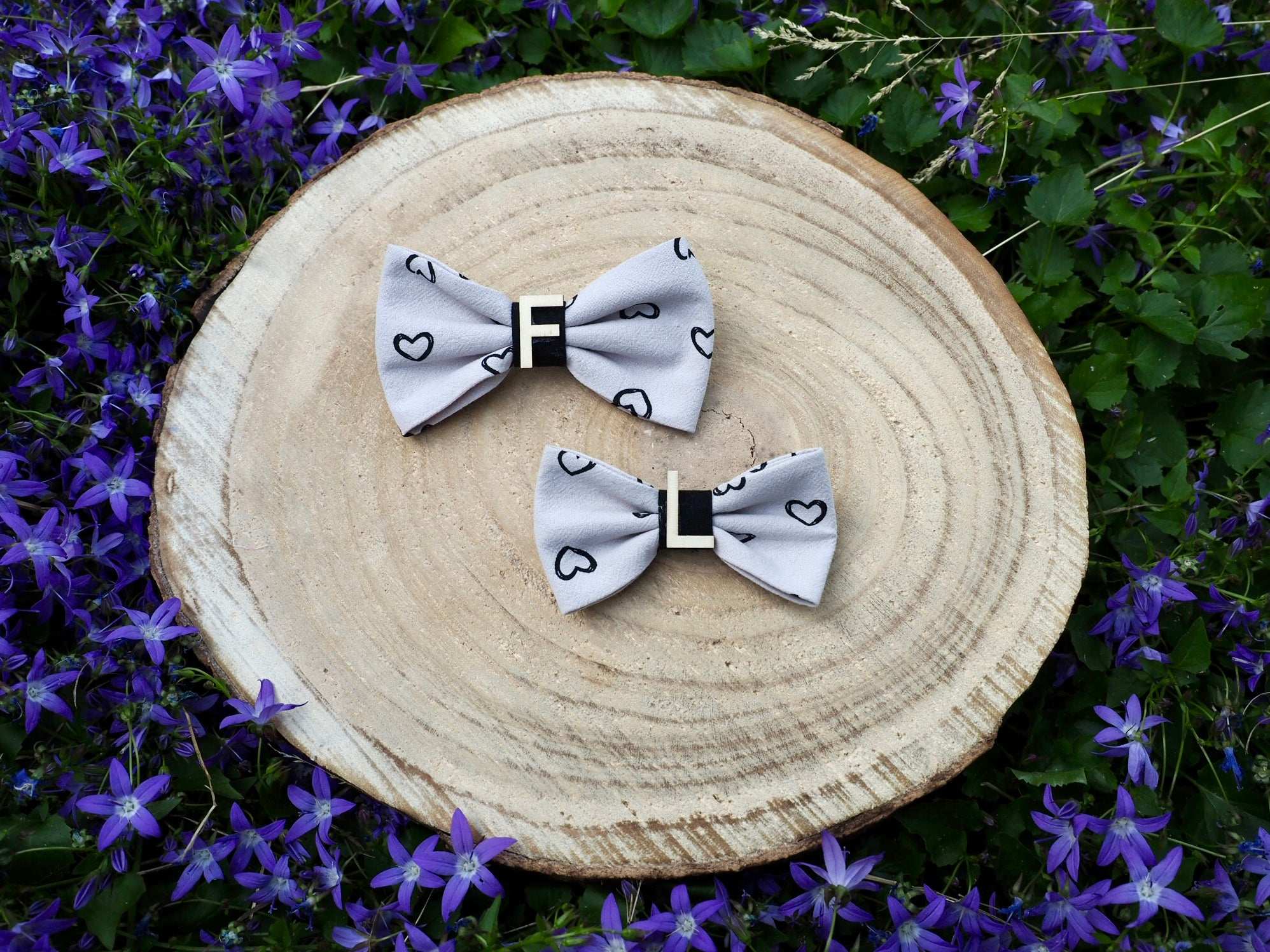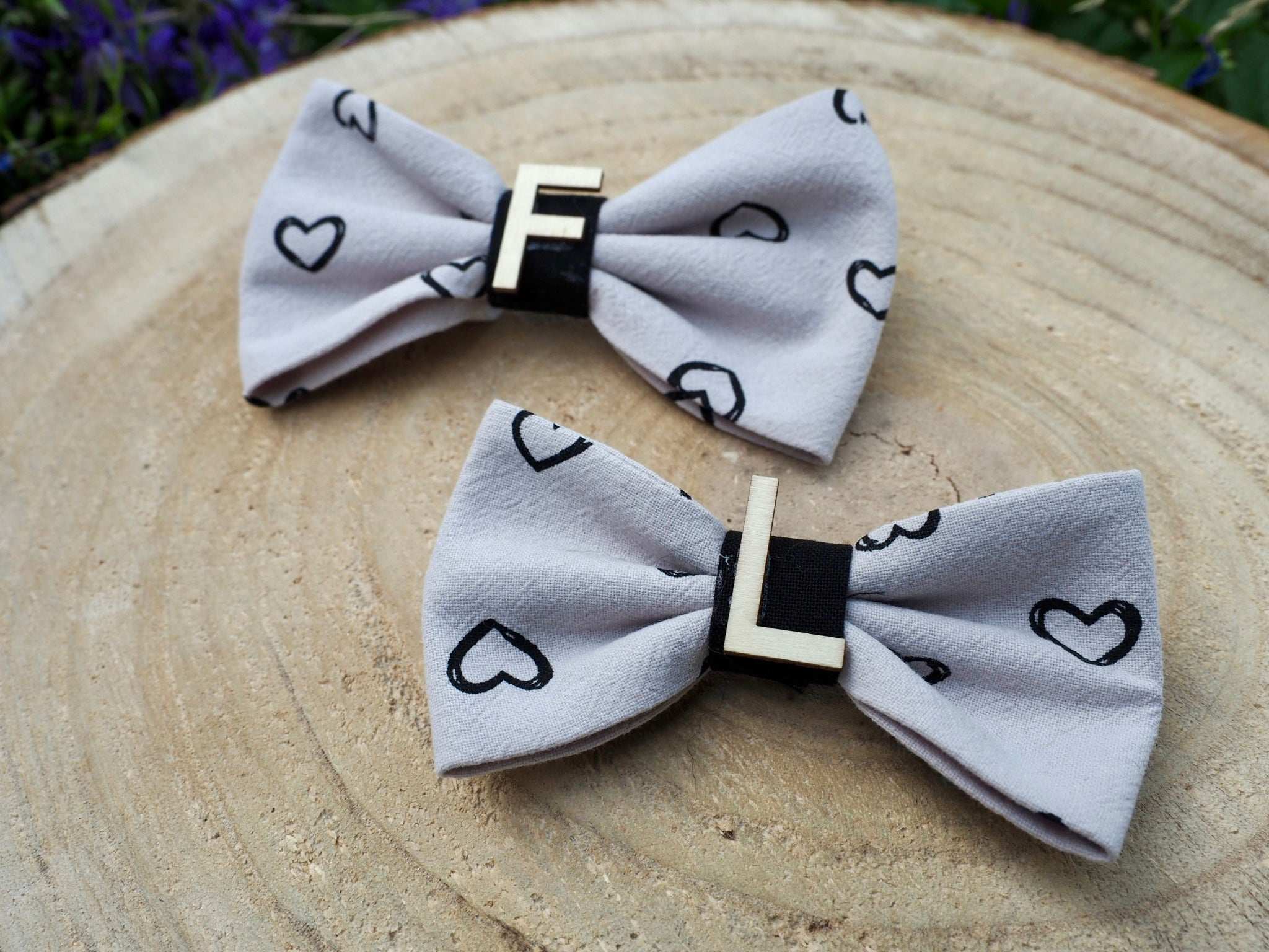 This enchanting dog bow / cat bow is the perfect accessory for your four-legged friend! The romantic heart pattern on beige-grey fabric gives the bow a charming and loving touch. The bow is particularly unique thanks to the possibility of personalization: when ordering, enter the name of your dog or cat in the message box and we will add a wooden letter :)