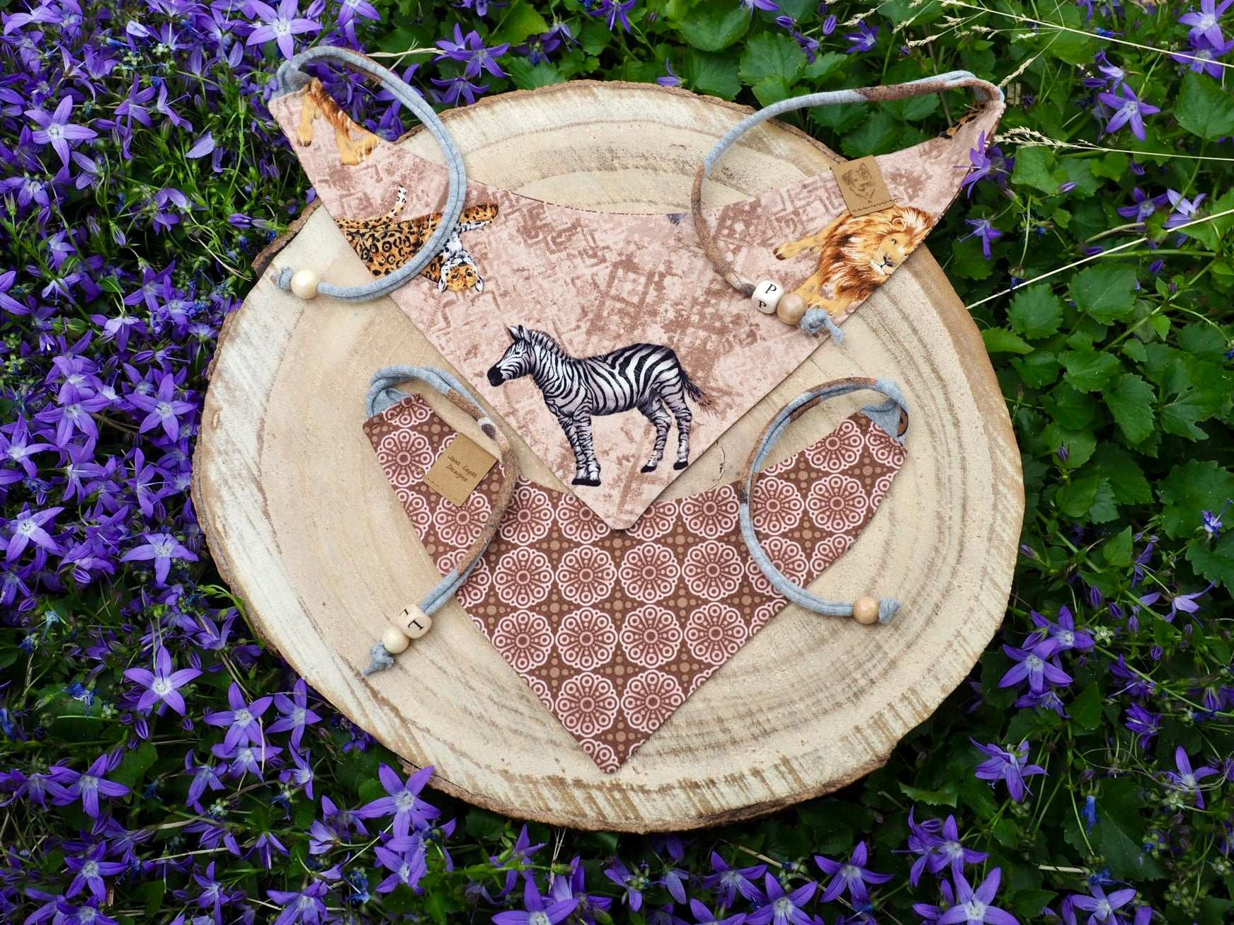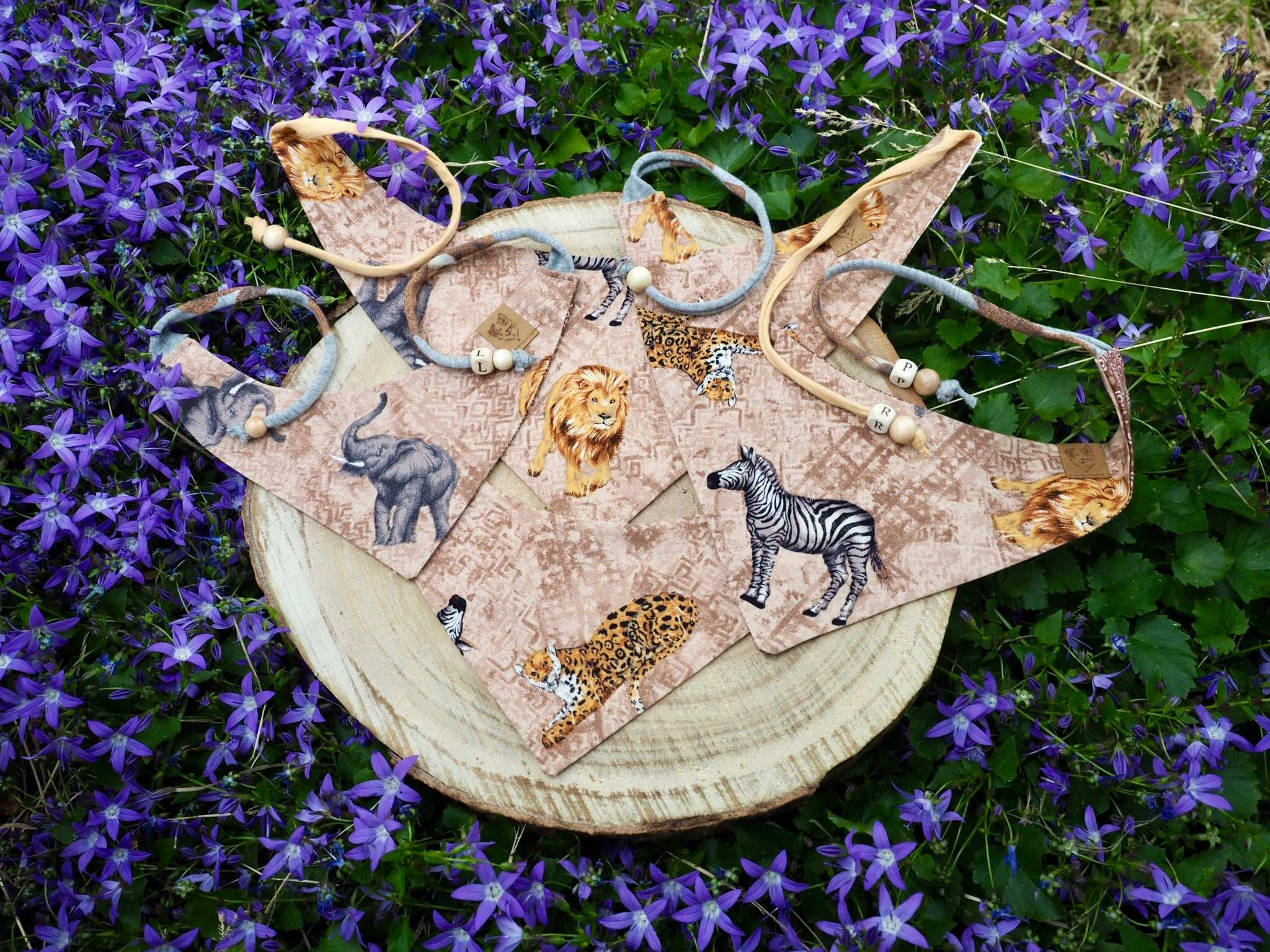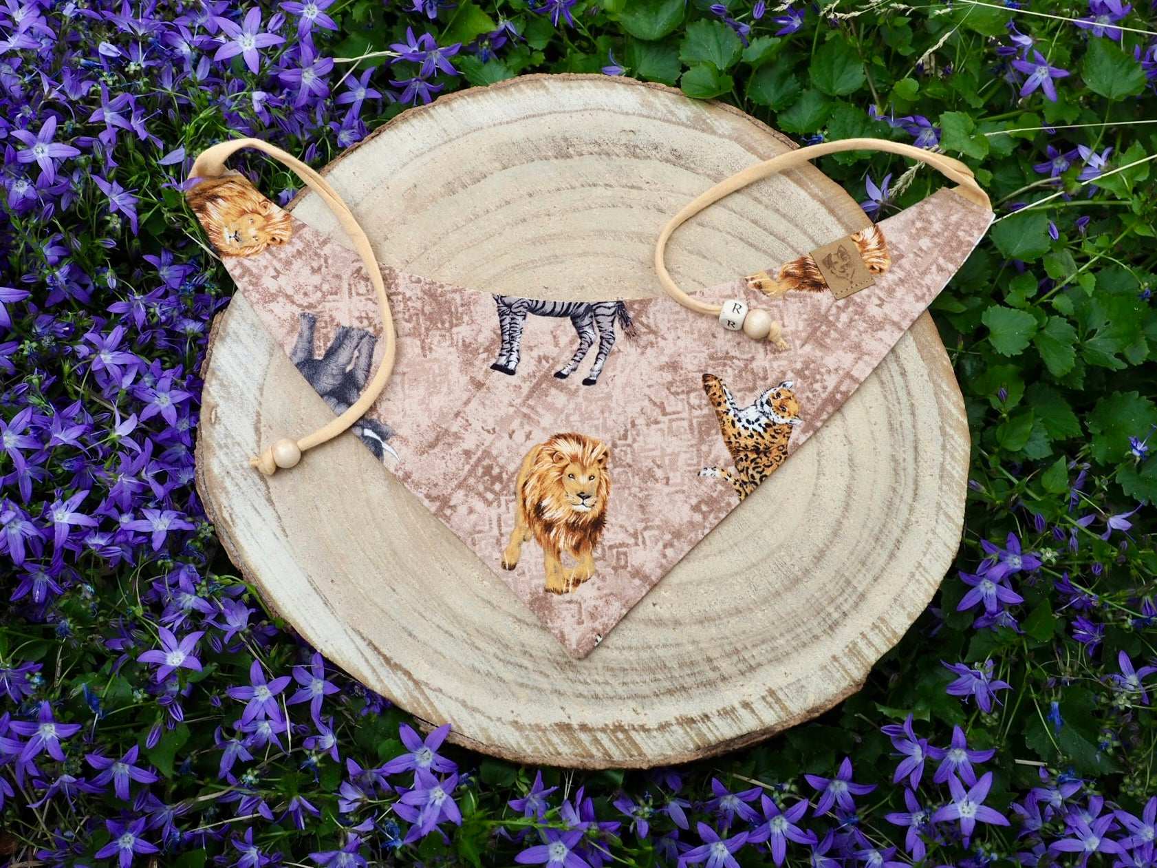 In the Jungle, the Mighty Jungle... With our chic dog bandana and cat bandana in jungle style, your four-legged friend is perfectly equipped for the next adventure. Choose between leopard and lion and get your bandana with the lighter reverse side or opt for elephant or zebra and your bandana will have the brown patterned reverse side - either way, the perfect accessory for daring pets and their trend-conscious owners!