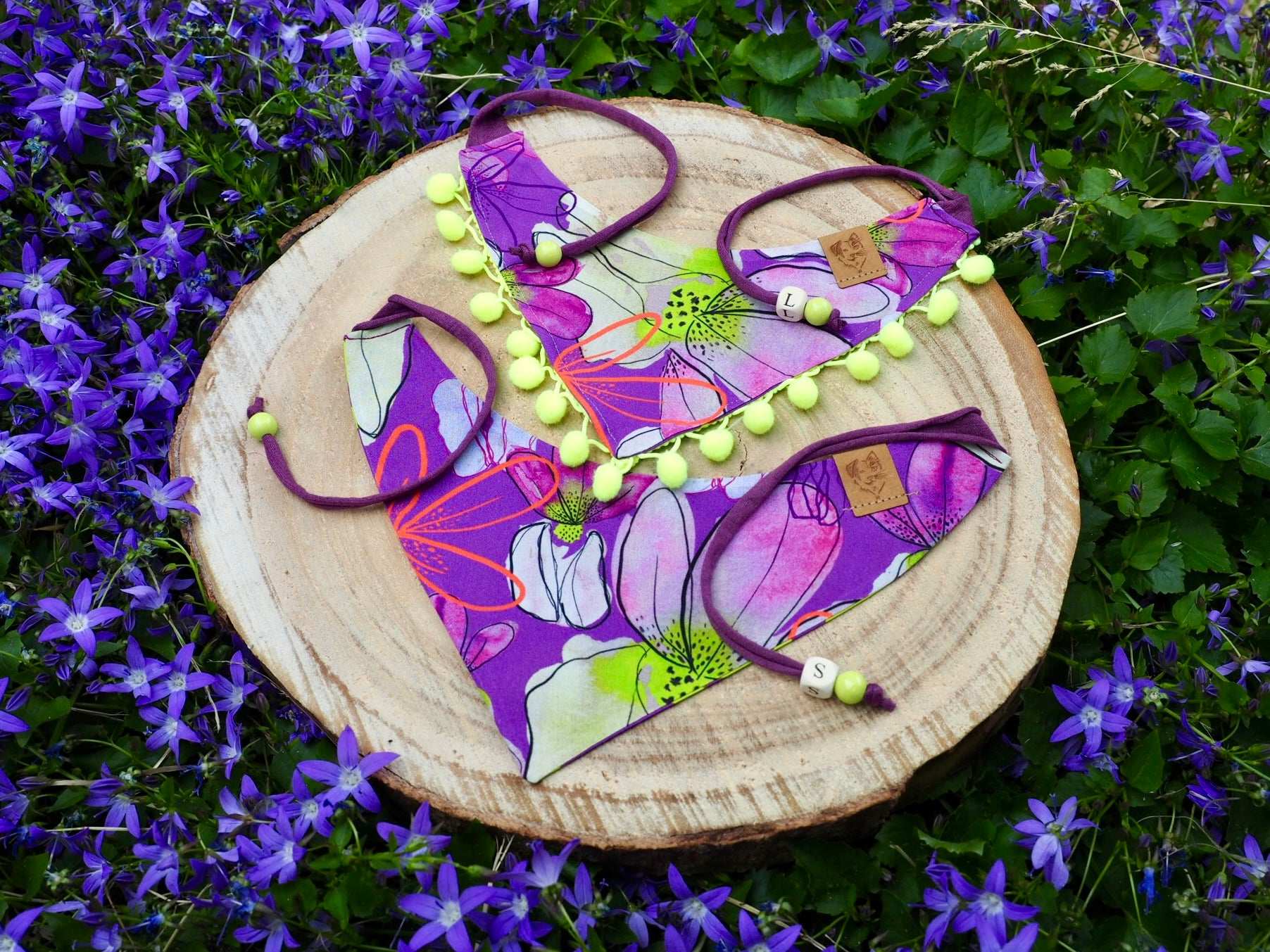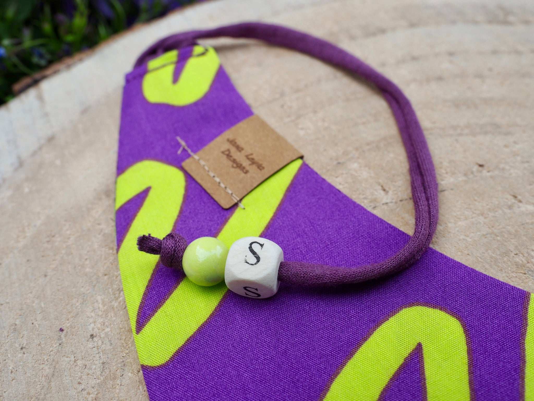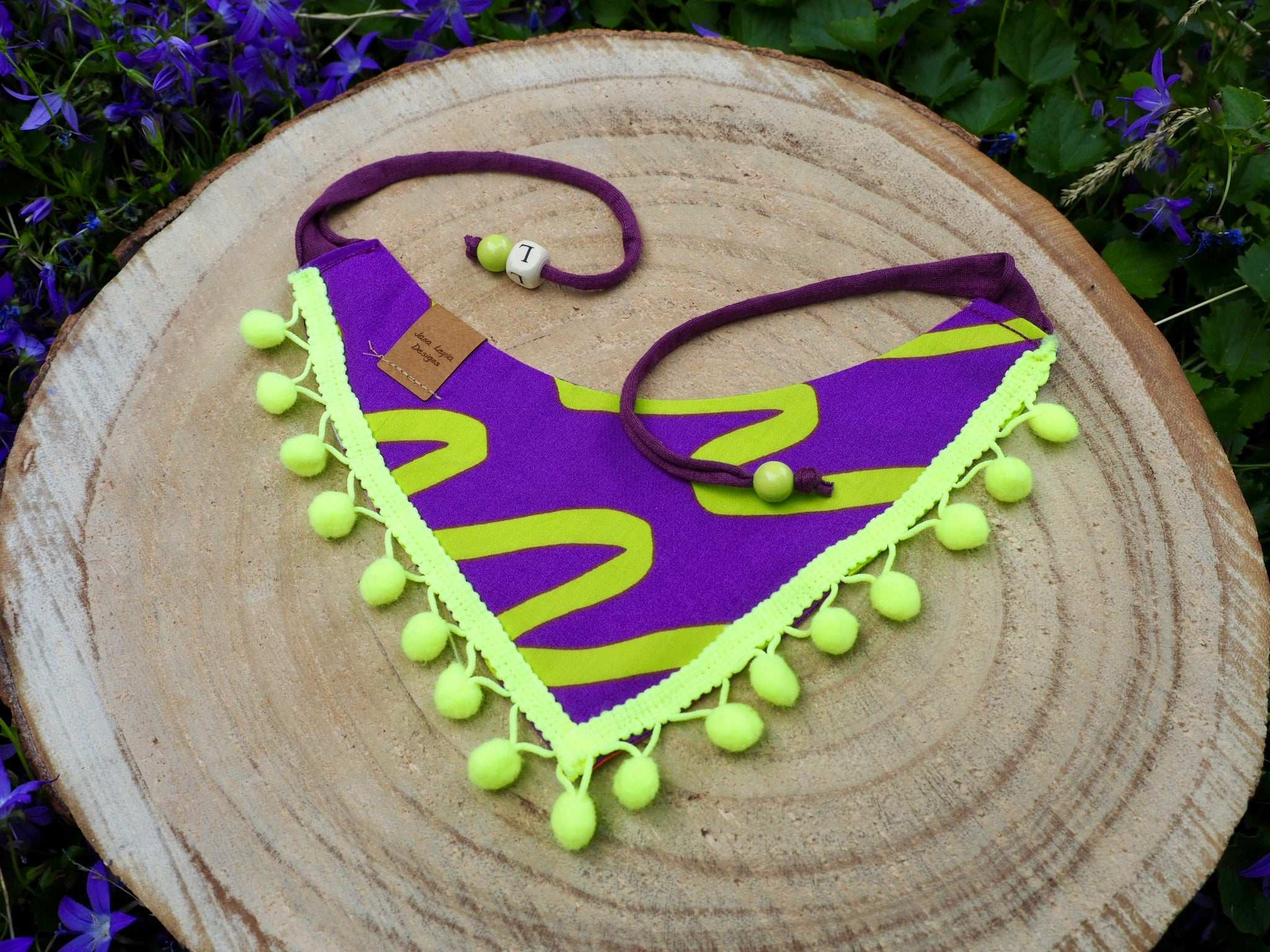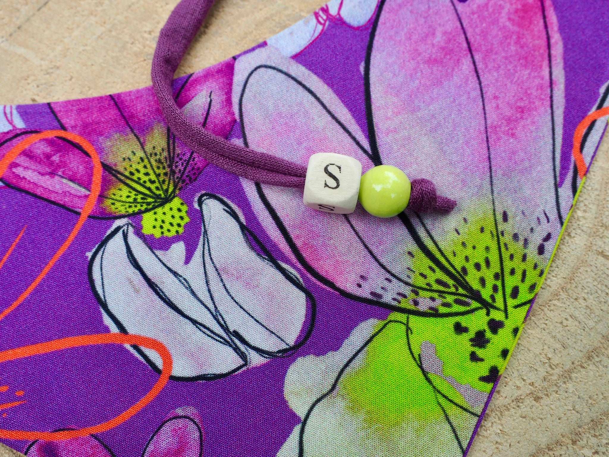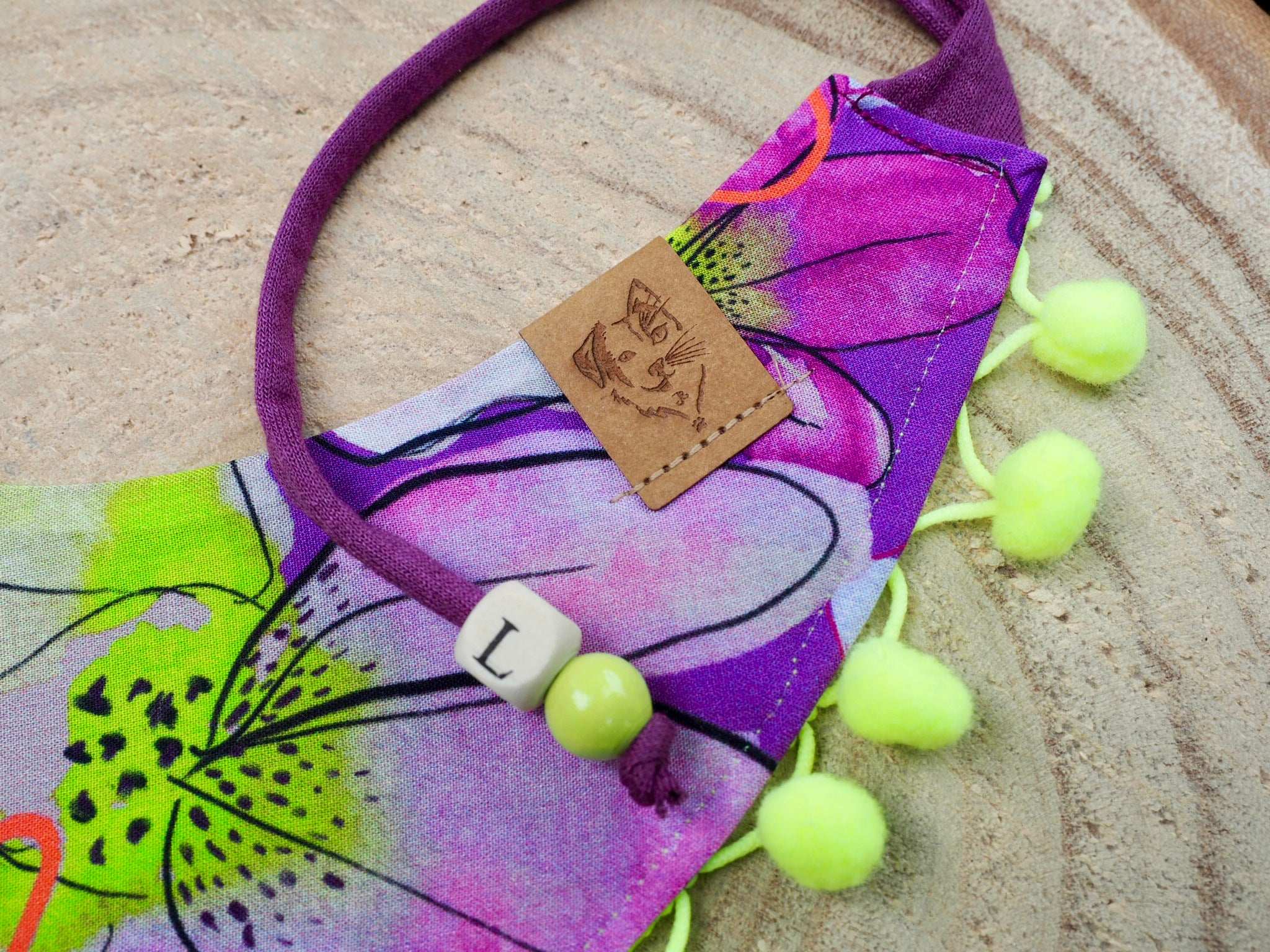 To give your dog bandana or cat bandana an even more personal touch and make it even sweeter, simply tell us the name of your dog/cat when adding it to the shopping cart and we will embellish your accessory with a wooden letter bead free of charge!