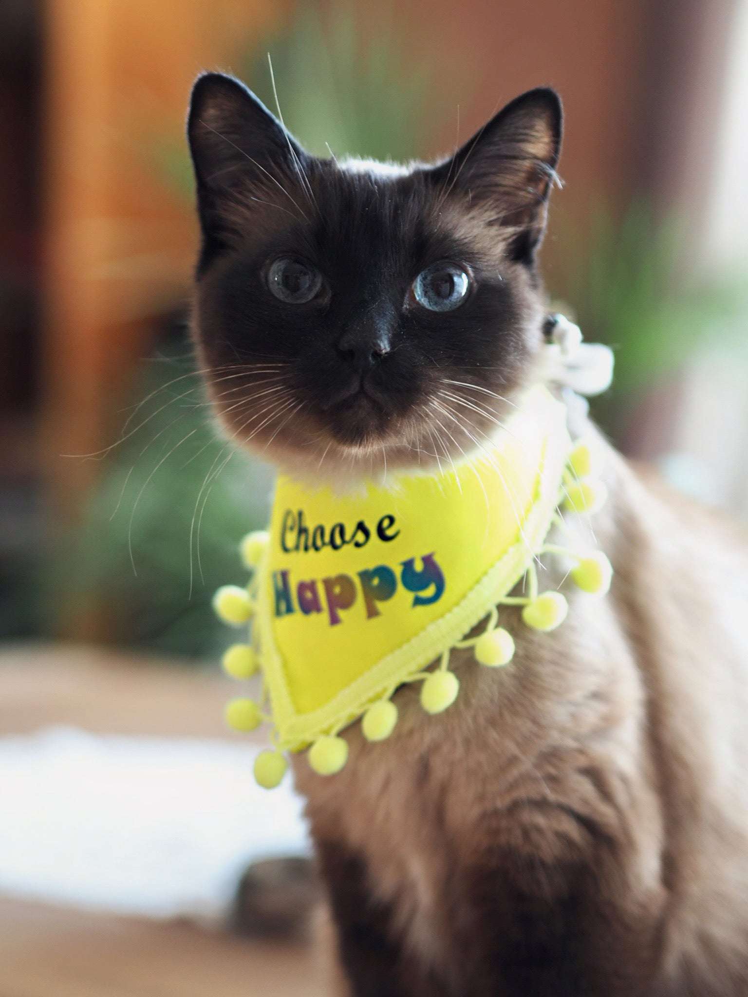 If you have the choice, then definitely “Choose happy” :)! Our dog bandana and cat bandana in bright colors and cheerful print will definitely put you in a positive mood - whether at a photo shoot or on a walk.