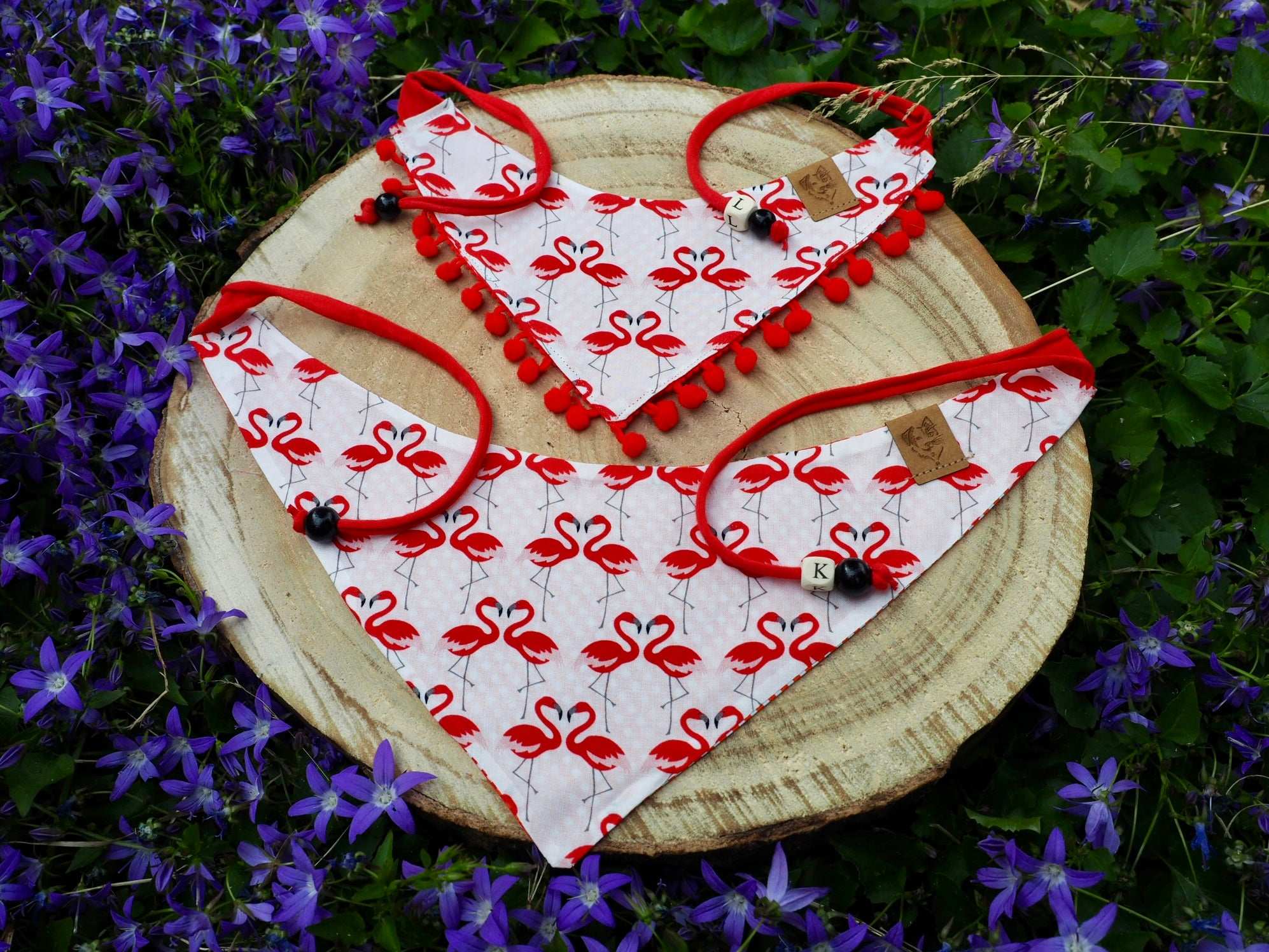 Flamazing - that's probably the best way to describe our summery dog bandana and cat bandana in bright red with a flamingo print and checks. Perfect for walks in the park or special occasions, this accessory is definitely an eye-catcher and guaranteed to put you in a good mood :) and the best thing about it? You can personalize it and add the name of your dog or cat!