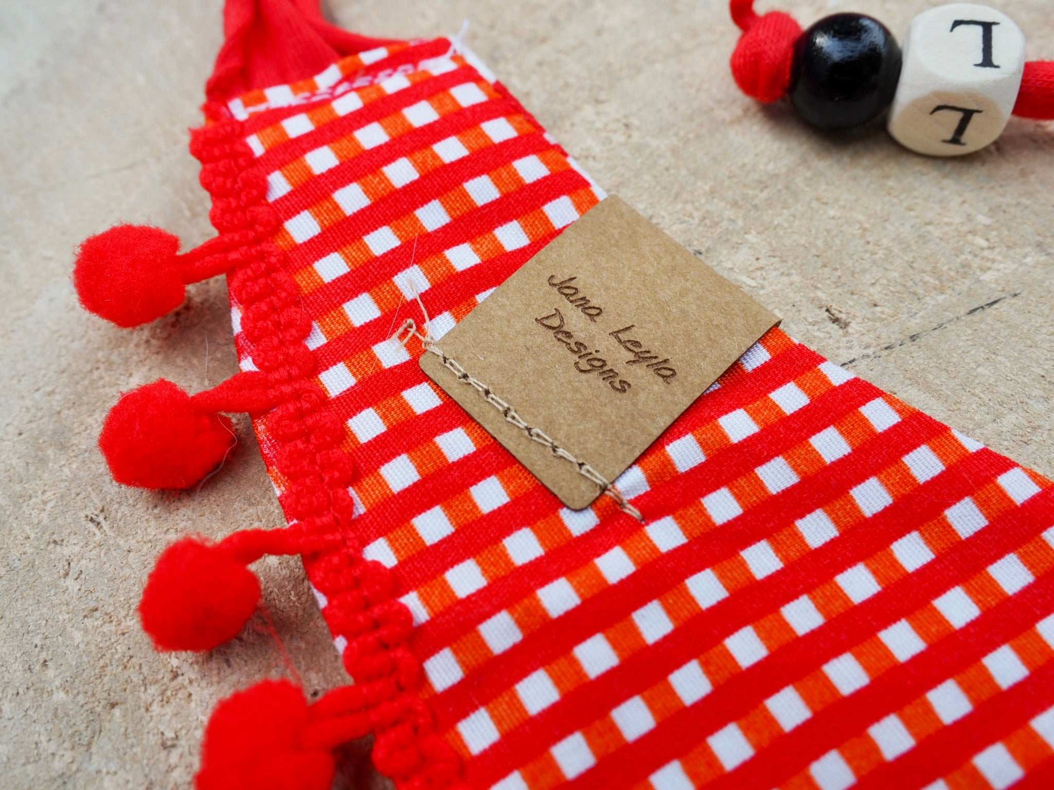 To give your dog bandana or cat bandana an even more personal touch, tell us the name of your four-legged friend when you add it to the shopping cart and we will also embellish your bandana with a wooden letter bead.rez.