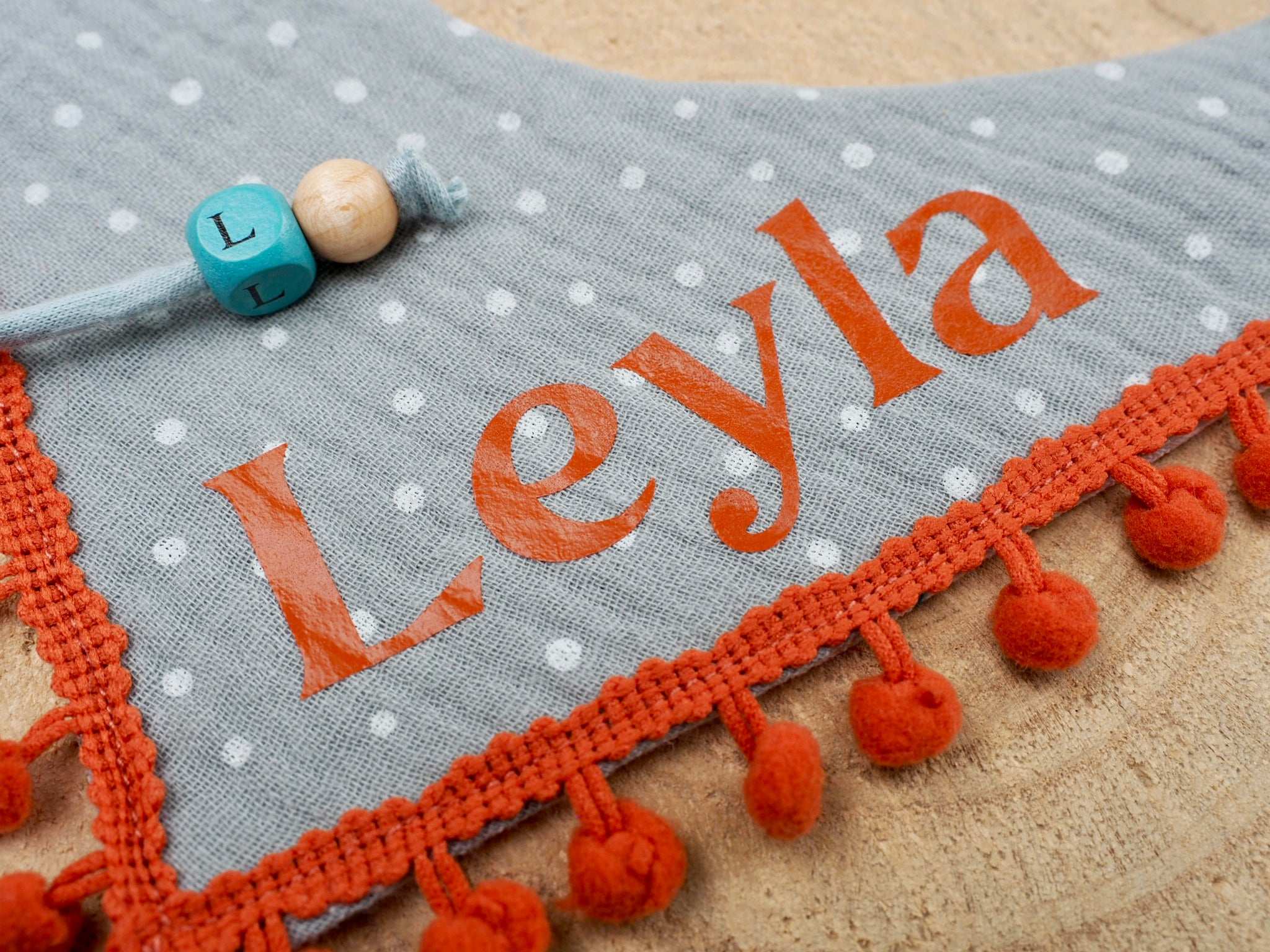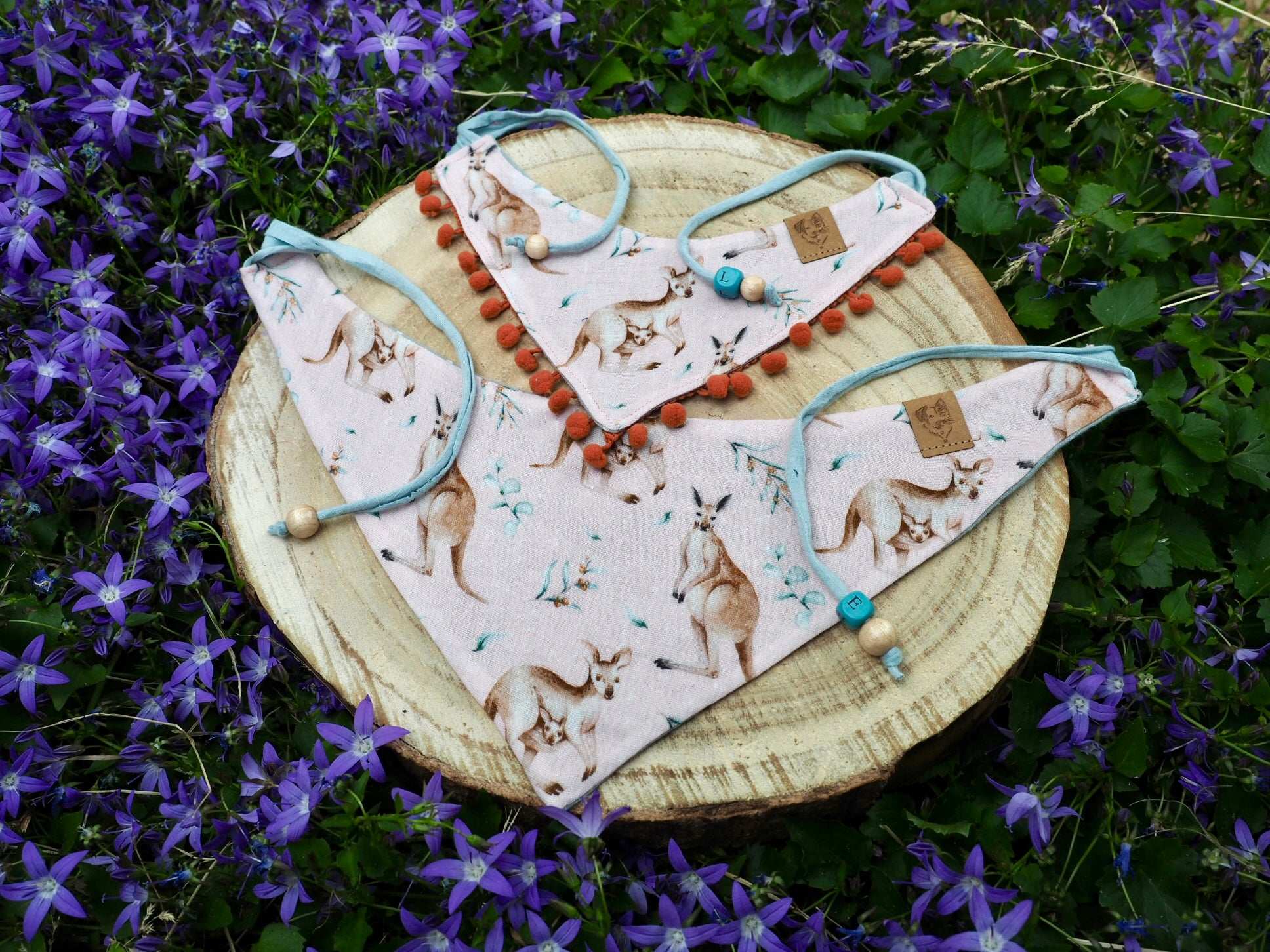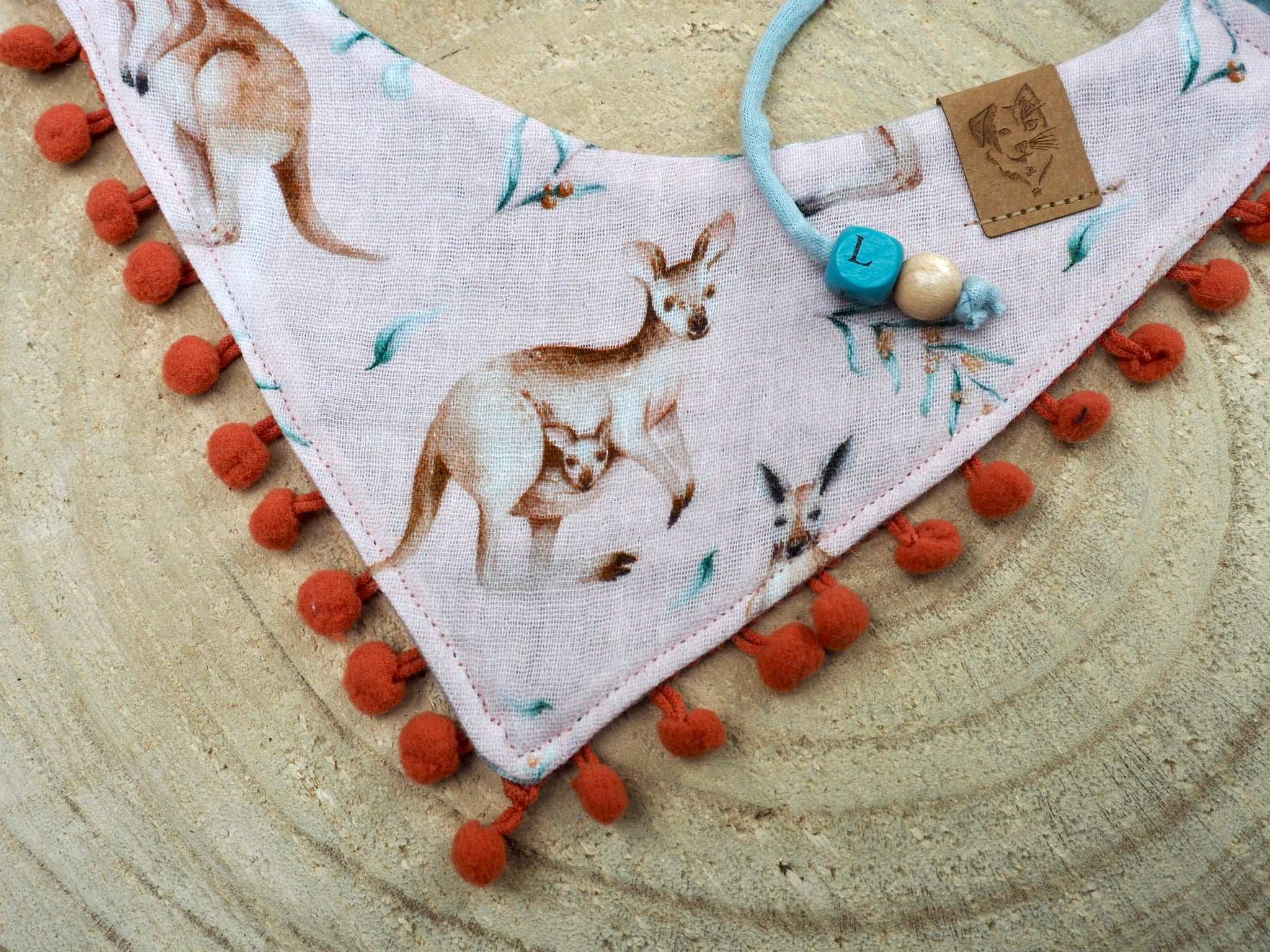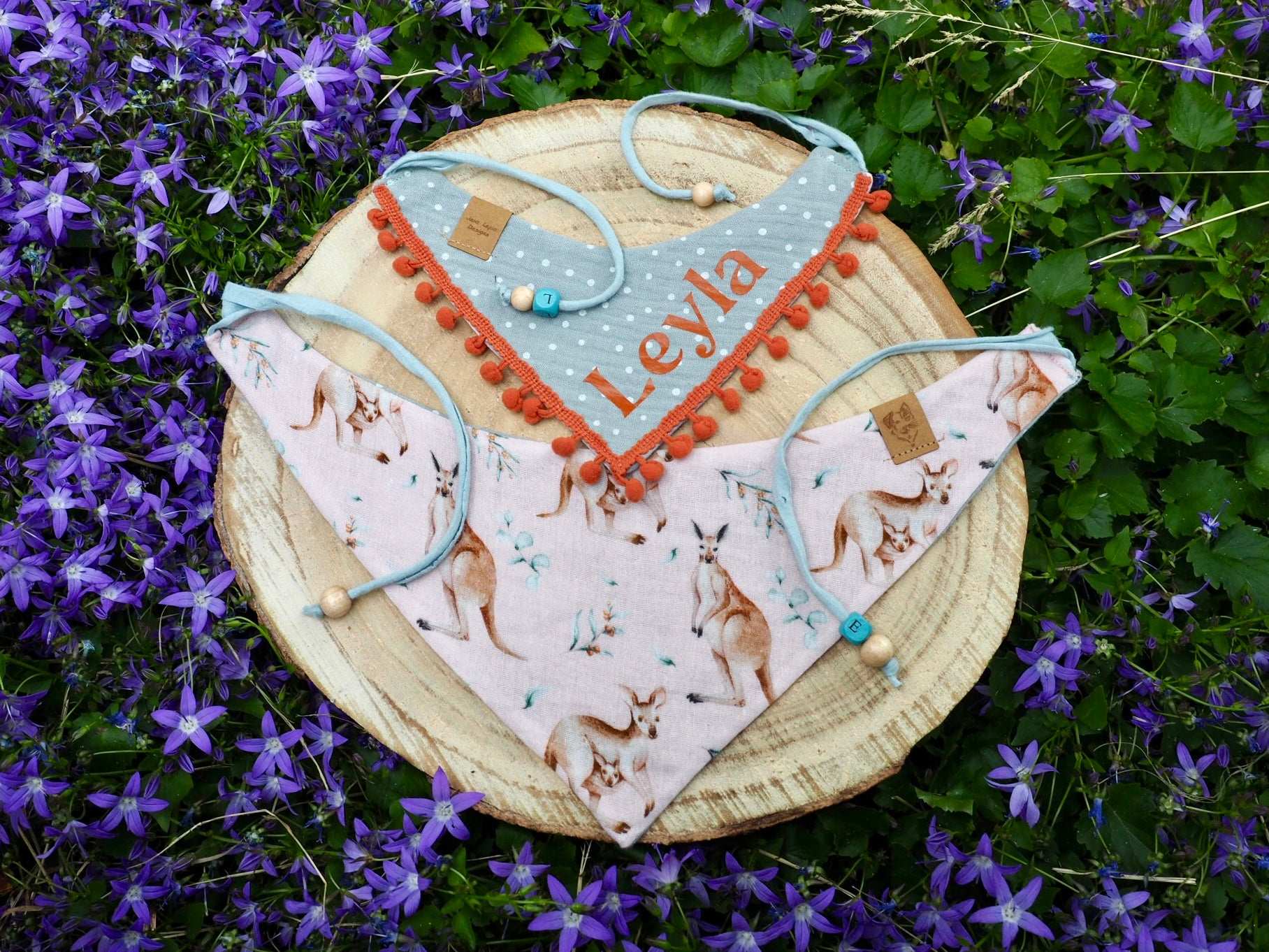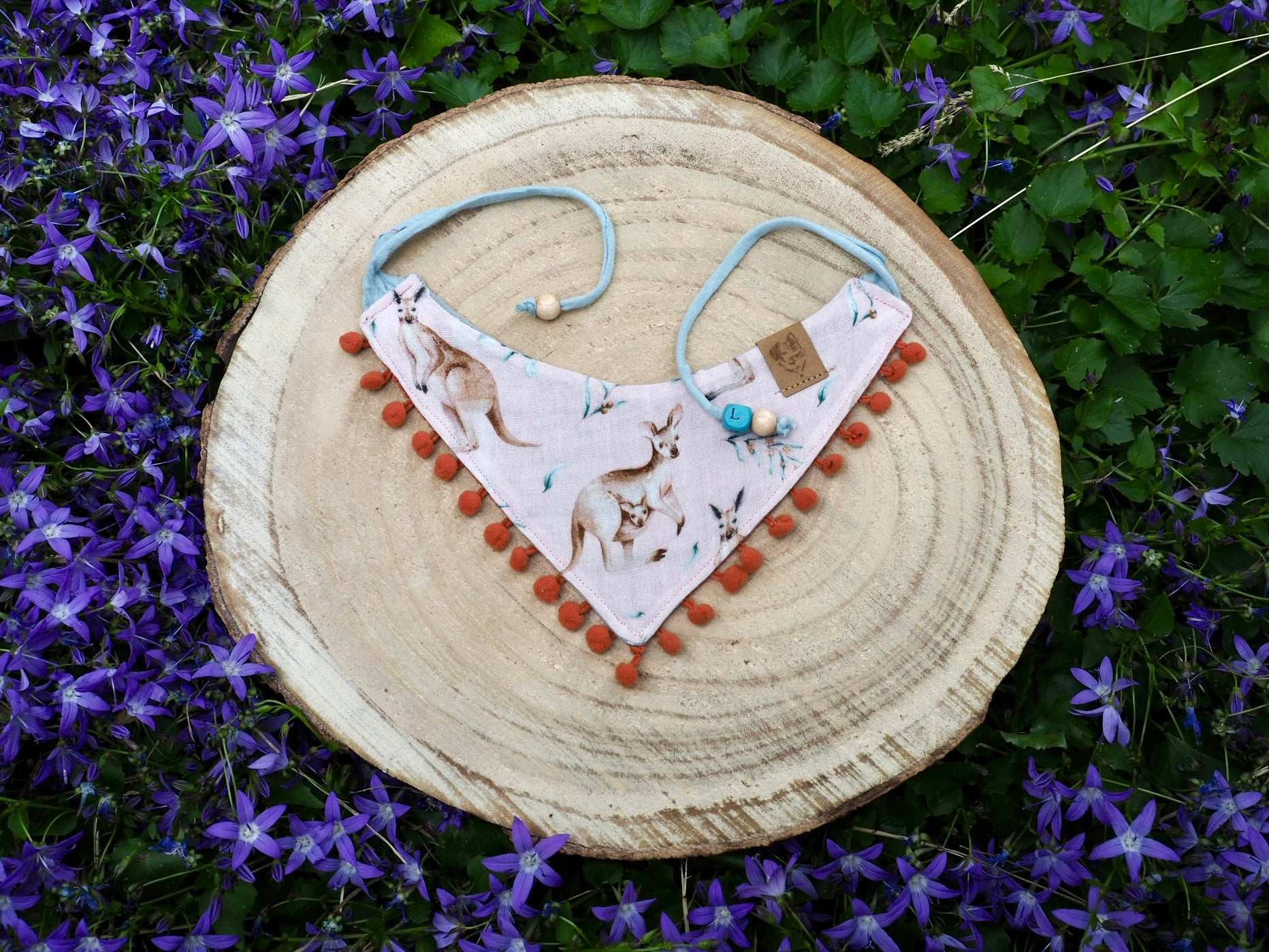 To give your dog bandana / cat bandana an even more personal touch, tell us the name of your four-legged friend when you add it to the shopping cart and we will also embellish your bandana with a wooden letter bead.
