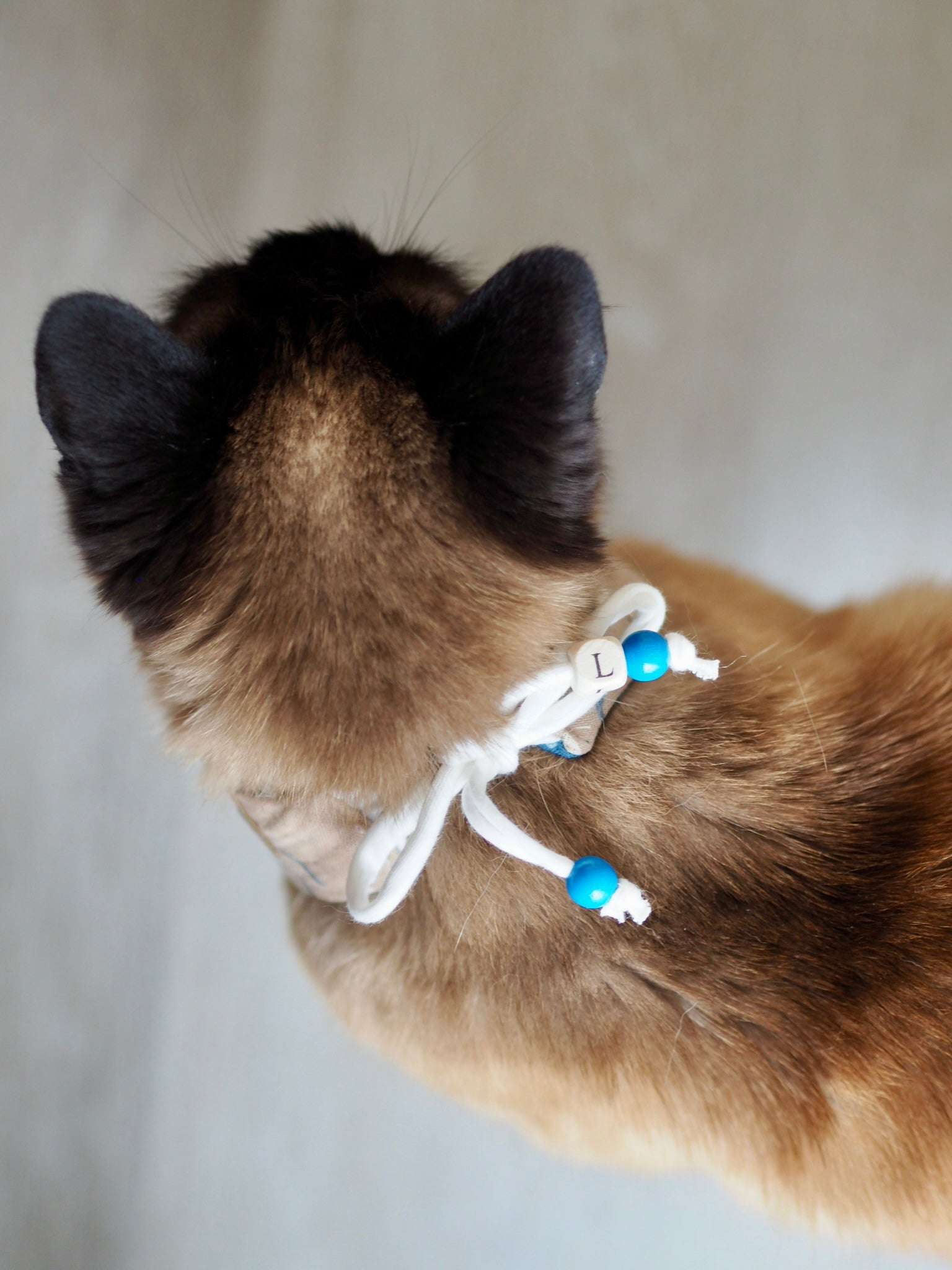 Would you also like to personalize your dog bandana or cat bandana? Then simply tell us the name of your dog or cat in the order notes box when you add it to the shopping cart and we will embellish your bandana with a wooden letter bead free of charge!