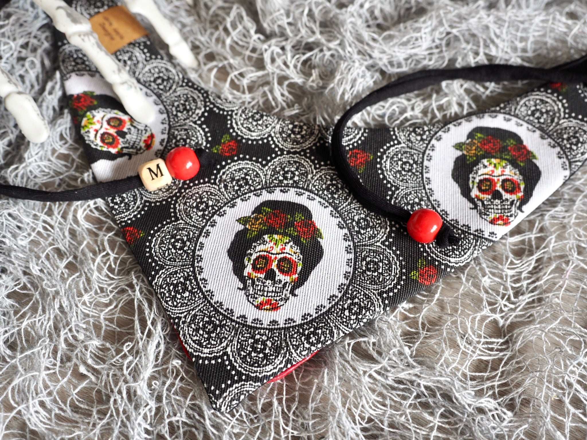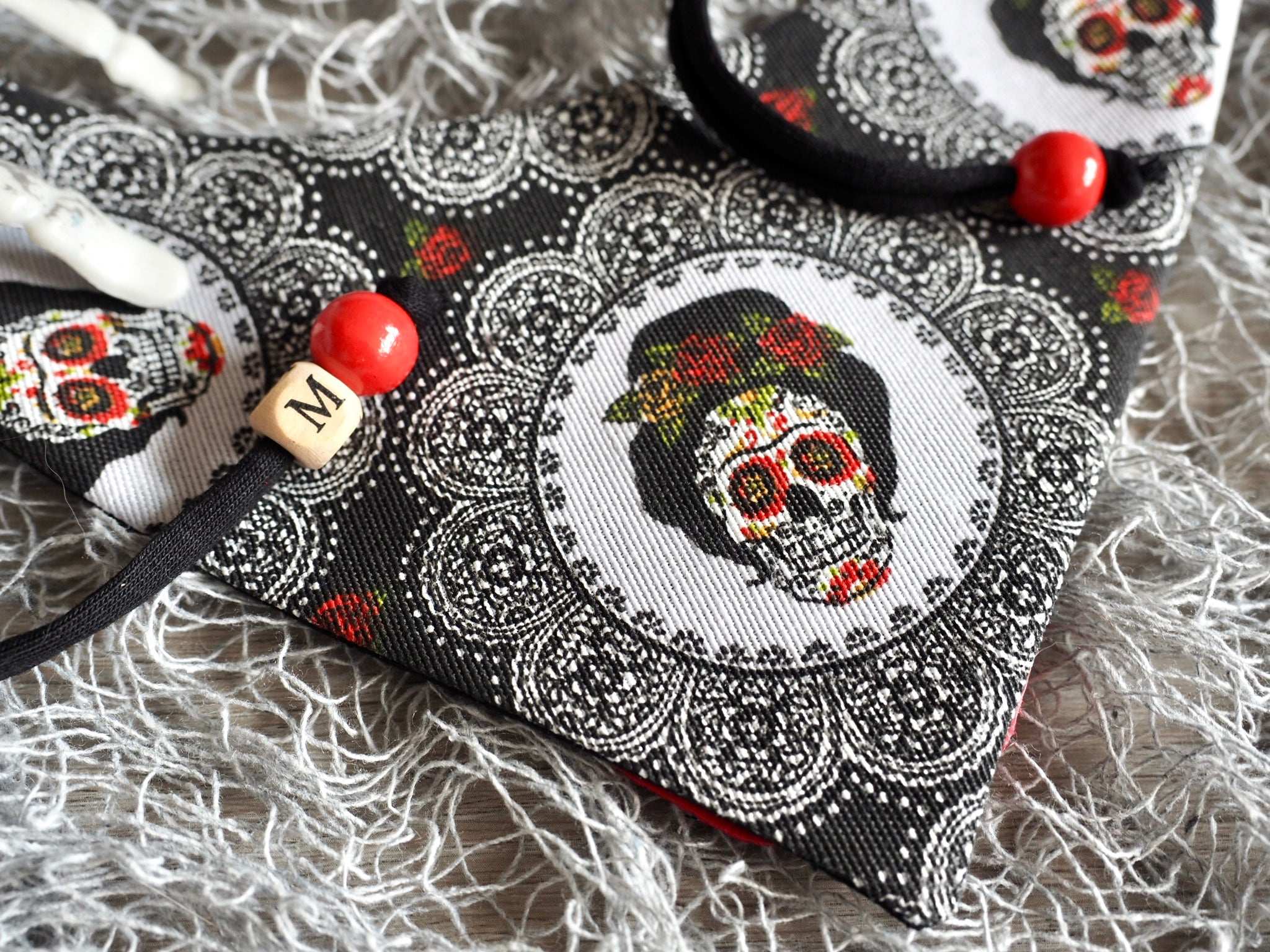 Note: Each bandana is a handmade unique item. The design in terms of colors and shapes can therefore differ from the pictures, depending on the cut of the fabric. Special requests regarding the design can be entered in the "additional info box" before completing the order. While we will strive to satisfy your requests (depending on the existing inventory of fabrics, applications, etc.) please note that there is no guarantee that all special requests will be met.