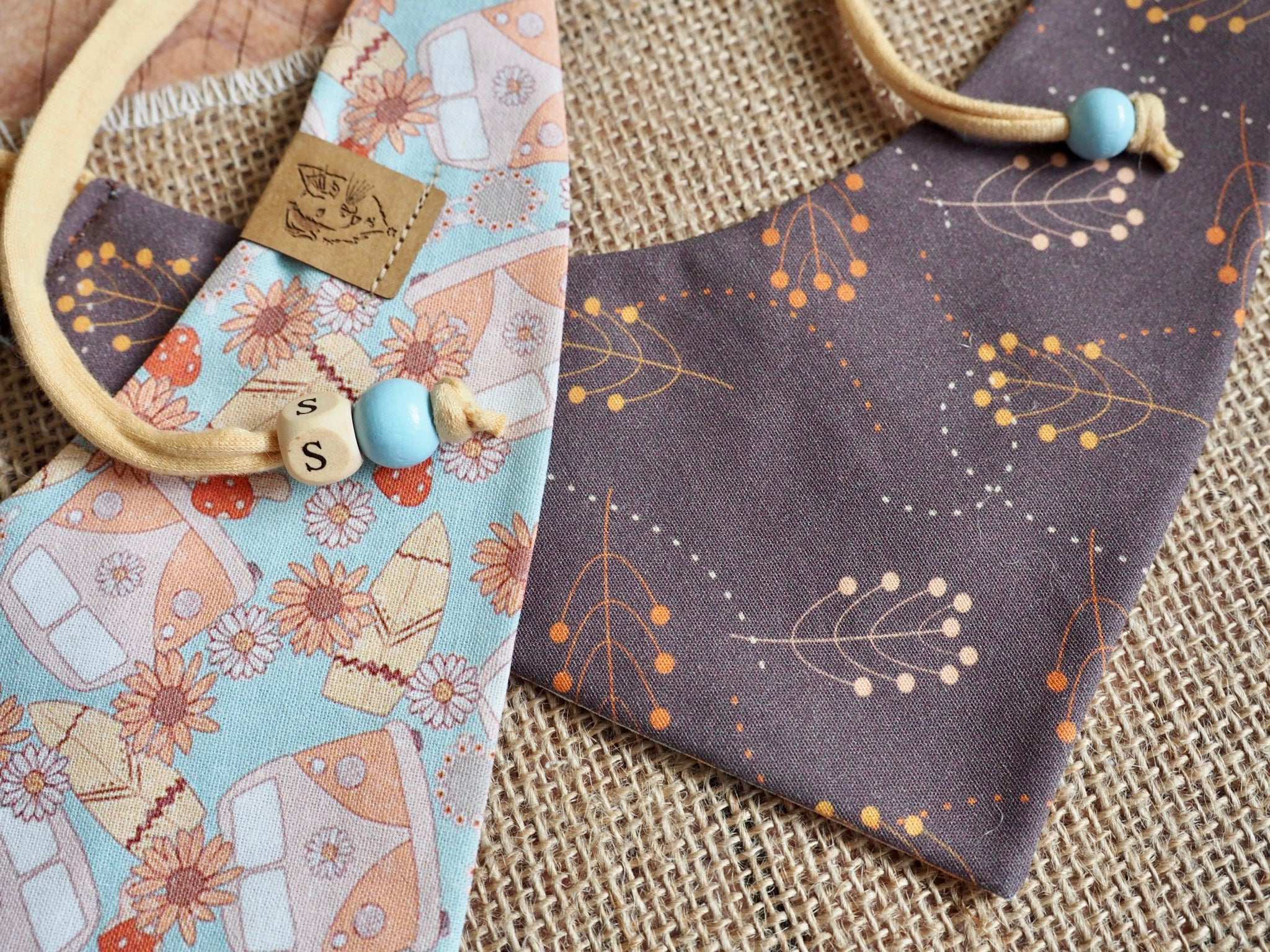 Note: Each bandana is a handmade unique item. The design in terms of colors and shapes can therefore differ from the pictures, depending on the cut of the fabric. Special requests regarding the design can be entered in the "additional info box" before completing the order. While we will strive to satisfy your requests (depending on the existing inventory of fabrics, applications, etc.) please note that there is no guarantee that all special requests will be met.